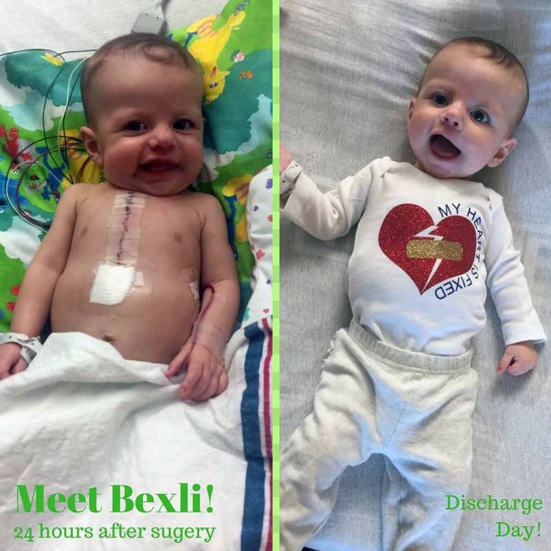 Bexli è nata con un difetto al canale atrioventricolare (canale AV), che è un difetto cardiaco congenito raro ma curabile. E’ stata operata all’età di 5 mesi per correggere l’anomalia.