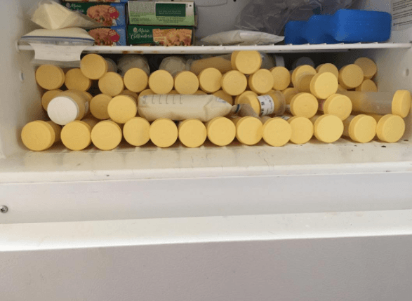 In totale dopo le 3 gravidanze, il latte donato è stato di 83 litri, più del peso della donna.