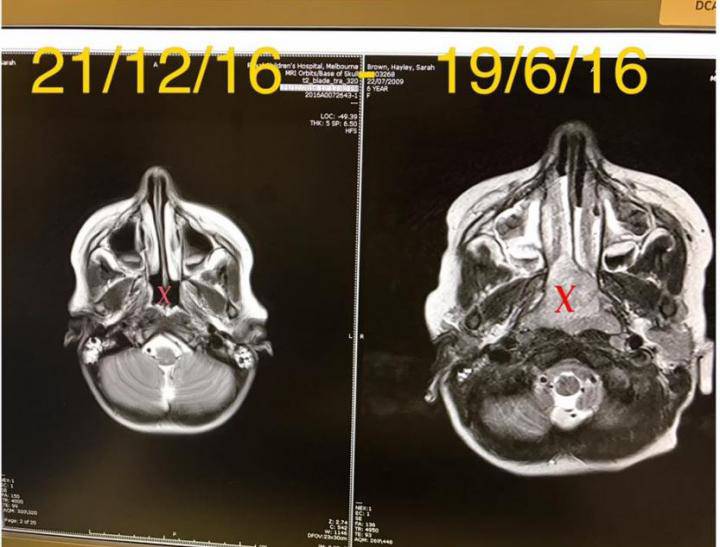 Alla figlia di Andrew, Hayley, è stato diagnosticato un rabdomiosarcoma, un tumore di 5 cm che si era sviluppato nel suo naso e che aveva iniziato a darle problemi all’occhio.
