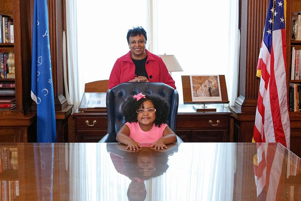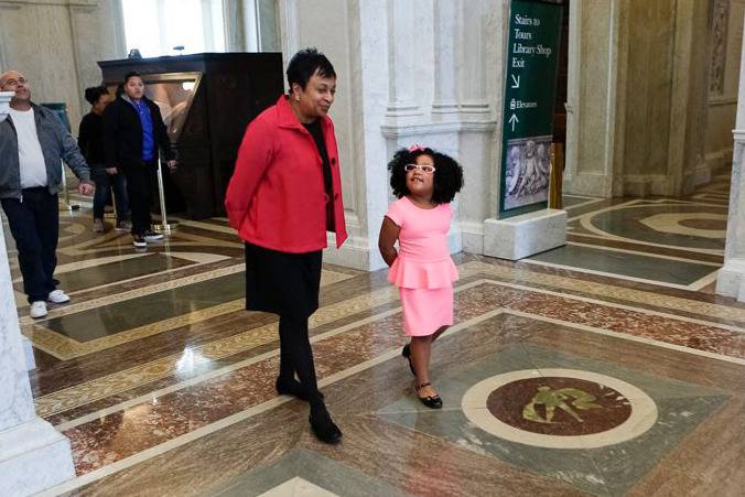 La Hayden, la prima donna e la prima afroamericana a capo della Biblioteca del Congresso, ha accompagnato la bimba durante l’esplorazione.