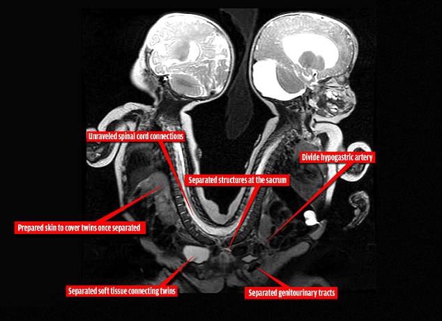 Il team che ha operato le bambine era formato da neurochirurghi, infermiere, urologi, pediatri, chirurghi plastici e molti altri.