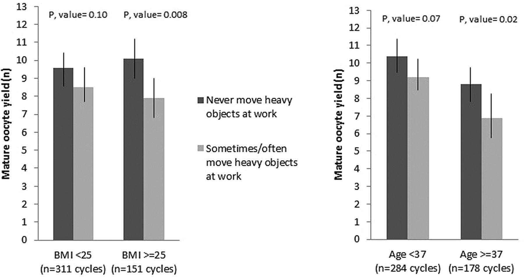 Muovere o alzare grossi pesi al lavoro è stato inversamente associato al numero di follicoli antrali e al numero di uova tra le donne.