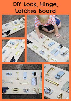 serratura fai da te con cardini e catenacci: questa tavola può essere piccola, ma terrà i vostri piccoli molto occupati.