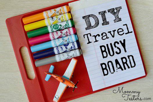 tavola da viaggio fai da te: chi dice che una tavola che tiene occupati deve essere permanente? Questa da viaggio è perfetta per i bambini per strada.