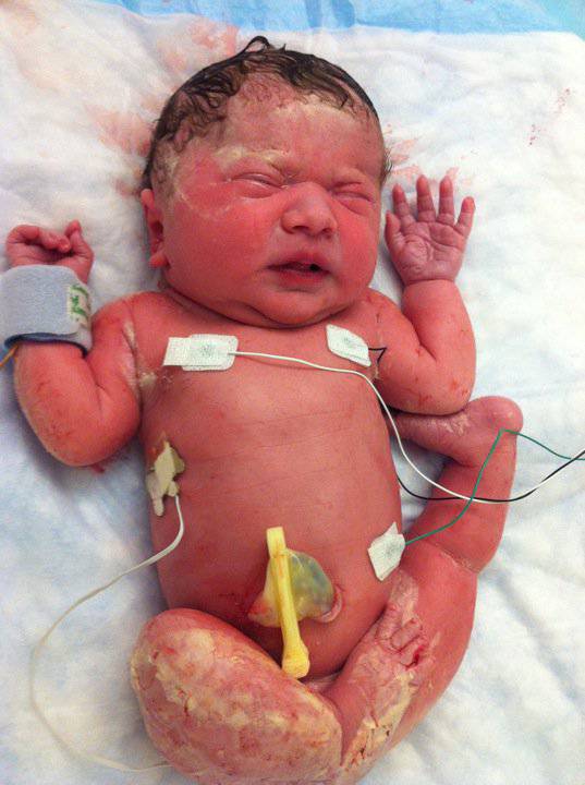 Dopo 3 mesi dagli ultrasuoni Zoe ha fatto il suo ingresso nel mondo. La bambina respirava da sola e aveva dei bei valori APGAR ma si era fratturata la clavicola durante il parto.
