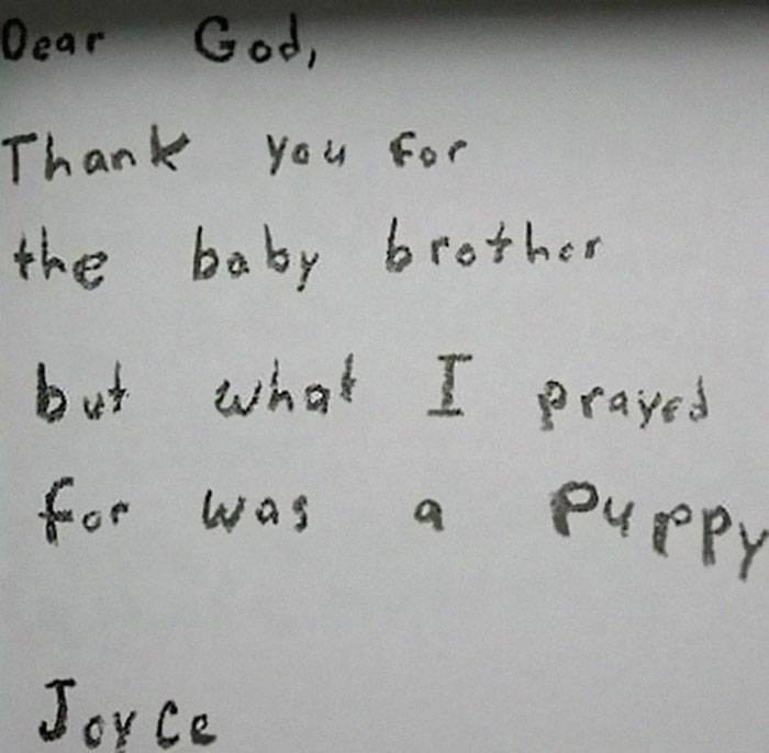 1- “Grazie Dio, grazie per il fratellino, ma io avevo pregato per un cucciolo.”