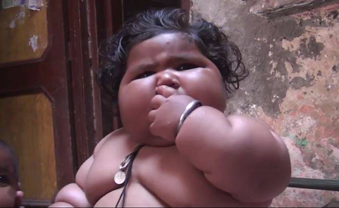 Un caso impressionante è quello di una neonata obesa in India. La bimba si chiama Chahat Kumar ed è nata con un peso normale, ma è cresciuta talmente tanto da arrivare a pesare circa 17 kg a soli 8 mesi. Il peso di un bambino di quattro anni.