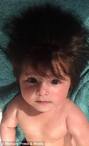 Ora Holly ha 4 mesi e con la sua massa di capelli attira l’attenzione ovunque vada.