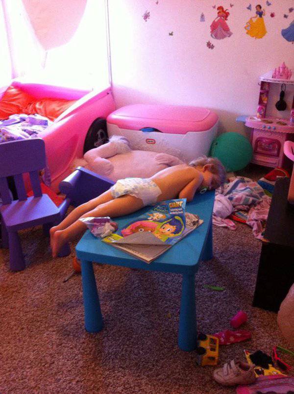 Guardate cosa hanno condiviso alcuni genitori, rispondendo alla domanda: “Qual è il posto più strano dove vostro figlio si è addormentato?“.