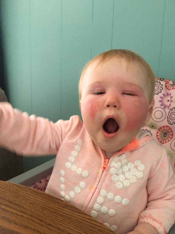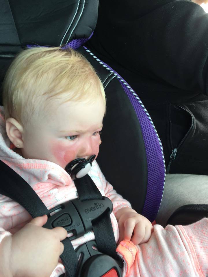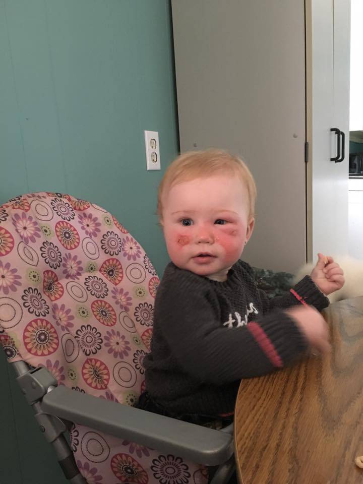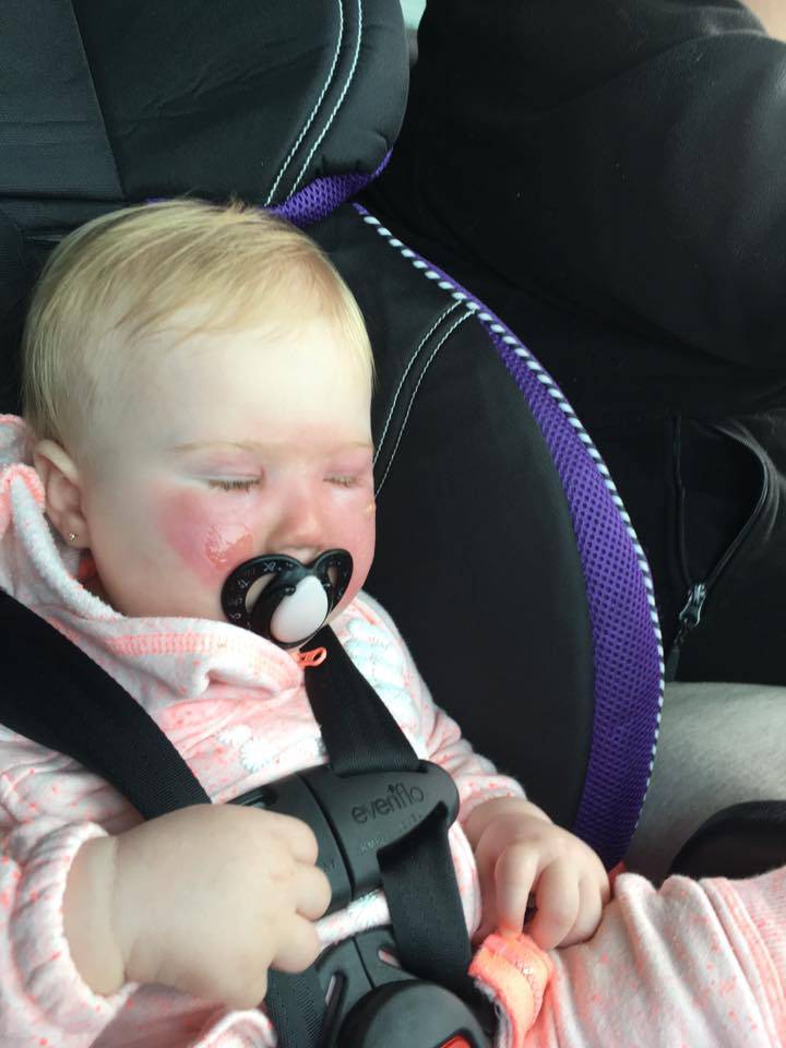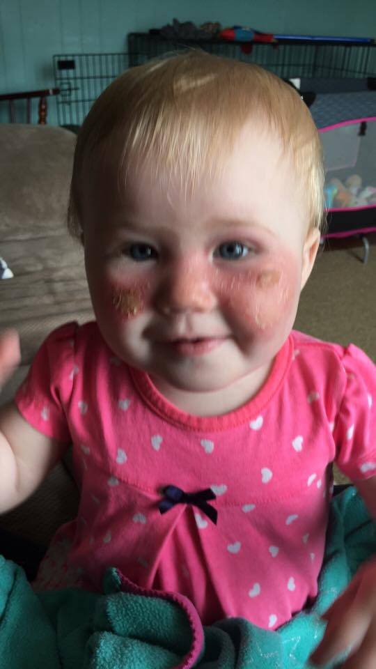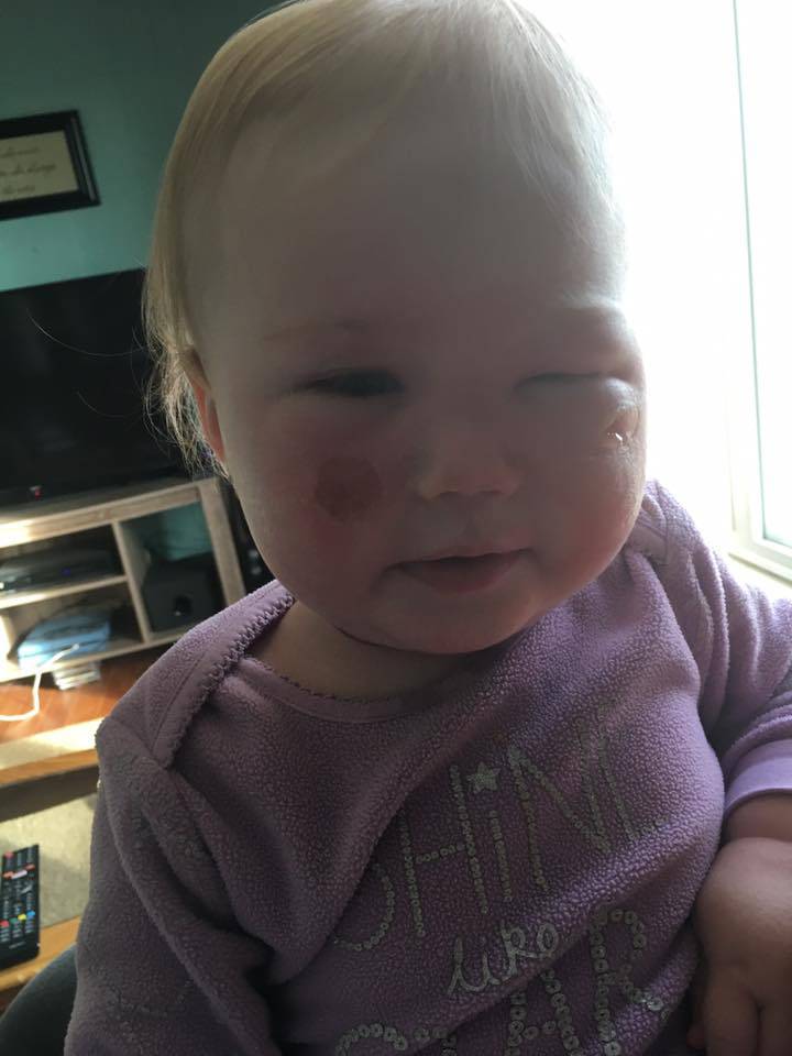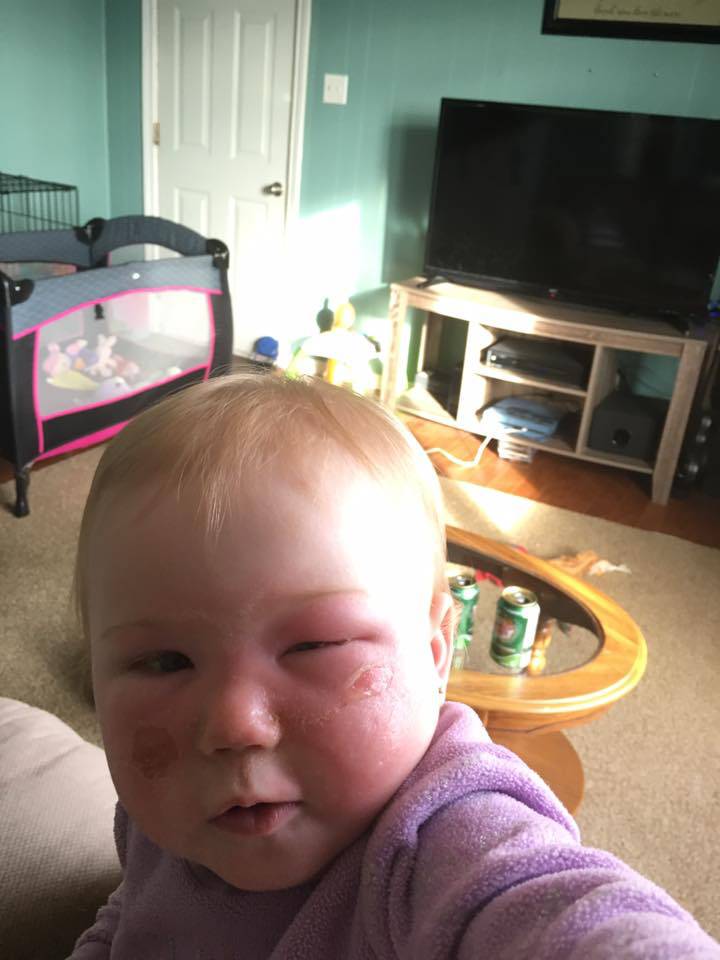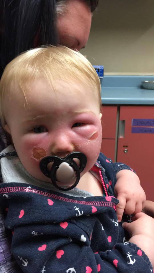 Purtroppo il volto della piccola Kayla si è gonfiato così tanto che la bimba è stata trasportata in ospedale con un’ustione di secondo grado.