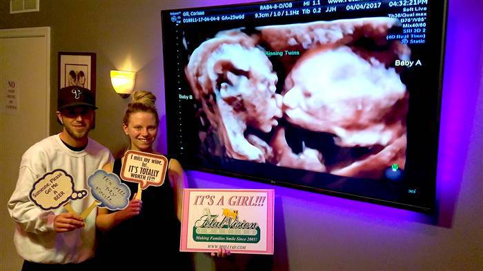 La ventiduenne mamma e il suo compagno Randy Good stavano si trovavano presso il Fetal Vision Imaging e, durante l’ecografia alla 25esima settimana hanno visto le loro due gemelline, Bella e Callie, ancora nell’utero materno mentre si scambiavano alcune coccole.