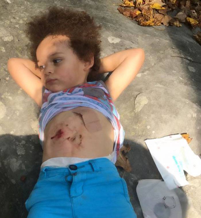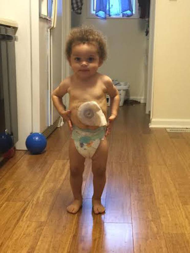 “Questa sera ci trovavamo da Walmart in coda in attesa di pagare. Il mio piccolino di 2 anni voleva che lo tenessi in braccio. Quando l’ho tirato su dal carrello la sua maglietta è salita mostrando le sue due stomie e sacche sullo stomaco.