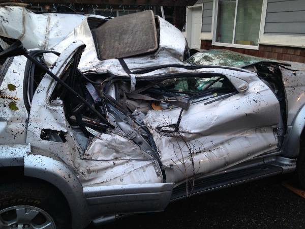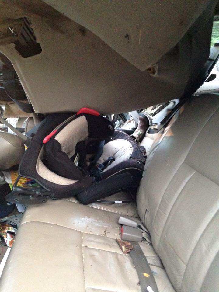 L’urto è avvenuto sul lato della macchina dove era seduto il bambino più piccolo, Hunter. La macchina si è ribaltata e il seggiolino si è piegato. Fortunatamente l’impatto è stato attutito e il bambino, anche se ferito gravemente, se l’è cavata. Merito del seggiolino installato correttamente. Hunter ha subito la frattura del femore sinistro, alcuni lividi ed escoriazioni sul corpo. Se il seggiolino, rivolto verso il lunotto, non fosse stato agganciato correttamente, il bambino avrebbe avuto subito conseguenze di gran lunga peggiori, visto che la macchina è andata completamente distrutta.