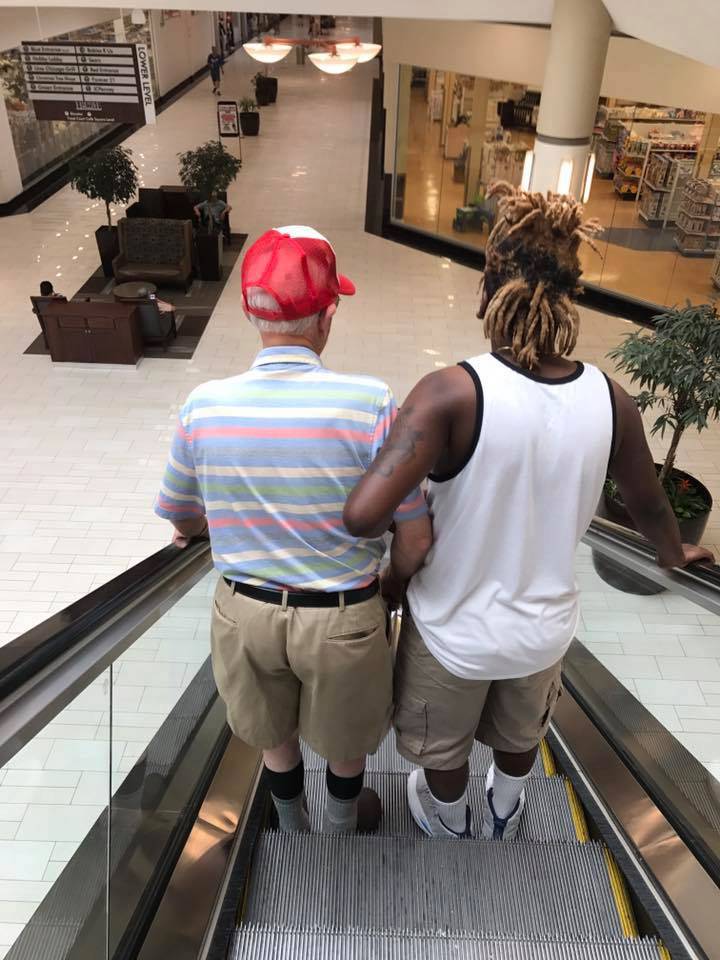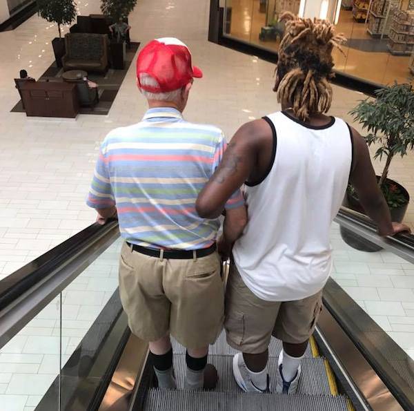 L’uomo più anziano si era fermato in cima ad una scala mobile e un po’ di persone hanno iniziato ad aspettare per salire. Era chiaro che si sentisse insicuro e questo giovane uomo ha offerto la più semplice gentilezza: un braccio e un “posso aiutarla, signore?”. L’anziano ha iniziato a spiegare al giovane che una volta è rimasto bloccato su una scala mobile ed era un po’ spaventato. Il giovane uomo lo ha rassicurato, si sono guardati negli occhi per un momento e l’uomo anziano ha accettato il suo braccio. Tutti gli altri sono rimasti pazienti. E’ stato davvero, davvero dolce assistere!