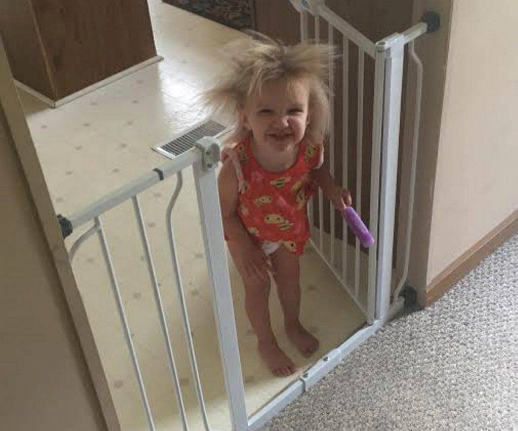 Phoebe Brasswel, una piccina di 21 mesi è nata con una rara malattia genetica che rende i suoi capelli simili a quelli di una persona che è stata colpita da una scossa elettrica.