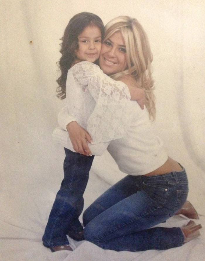 “Ce l’abbiamo fatta insieme. Mia mamma era incinta di me a 15 anni e mi ha avuta a 16. Mio papà ne aveva 17. La foto originale è del giugno del 2000. “