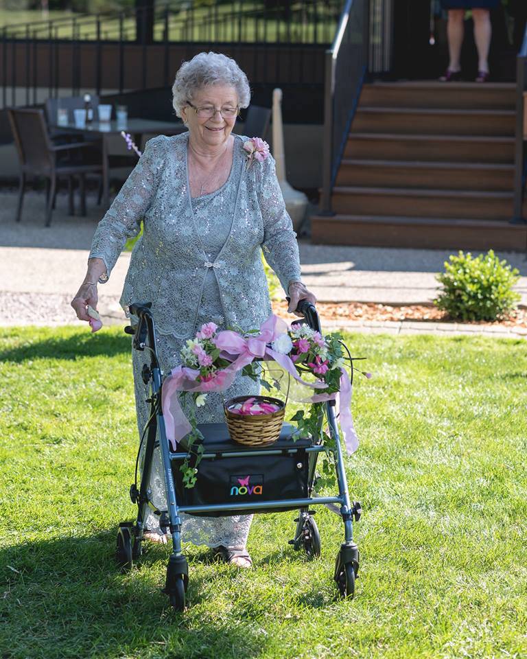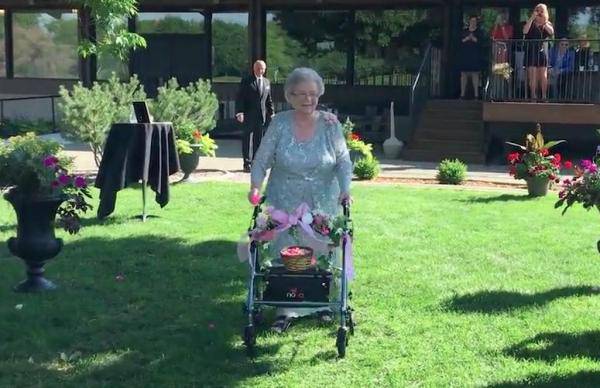 Nel caso della sposina Abby Mershon una delle persone speciali al suo matrimonio è stata sua nonna Georgiana Arlt, un’arzilla noventaduenne che ha solcato il corridoio tra gli invitati sulle note di Galway Girl di Ed Sheeran, lanciando fiori agli invitati.