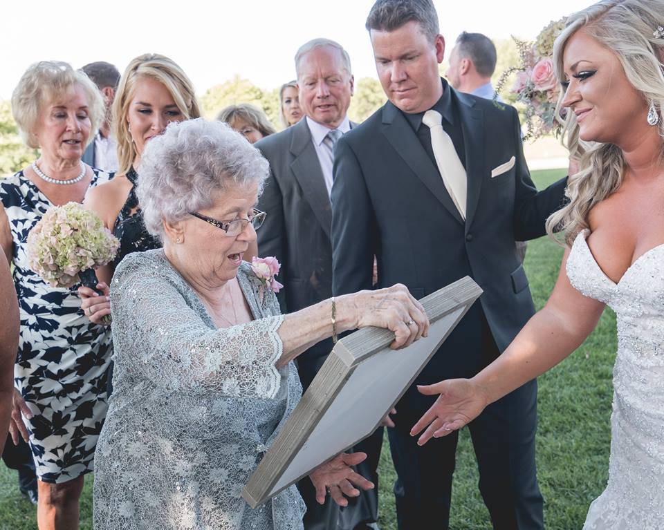 “Ho sempre voluto che mia nonna fosse coinvolta, inoltre volevo che mio nonno portasse l’anello, purtroppo è morto un anno fa. Io e mio marito le abbiamo chiesto di essere la nostra ragazza dei fiori davanti a tutta la famiglia. Mia nonna ha strillato con tutti i suoi polmoni, è stato davvero dolce. Continuava a ripetere: “non sono mai stata a un matrimonio a parte il mio””.