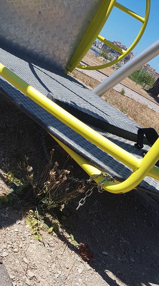 “Io e Matteo ringraziamo tutti quei cittadini che hanno fatto chiudere l’ Altalena così che i propri figli ” normodotati” possano rimanere incolumi mentre loro chiacchierano e giocano con il cellulare! O sono tranquilli tranquilli al mare poiché non hanno bisogno di aiuto o accessibilità.