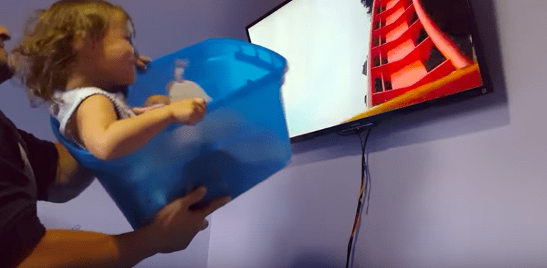 Un papà, Victor Peoro, ha deciso di realizzare ugualmente il desiderio di sua figlia e per farlo ha usato un mezzo decisamente particolare: il catino dei panni. Si può provare infatti l’esperienza di andare sulle montagne russe senza andarci e per farlo basta un televisore e appunto un catino dove di solito si ripone il bucato. Il risultato è davvero ricco d’amore!