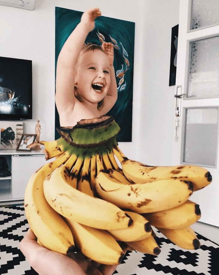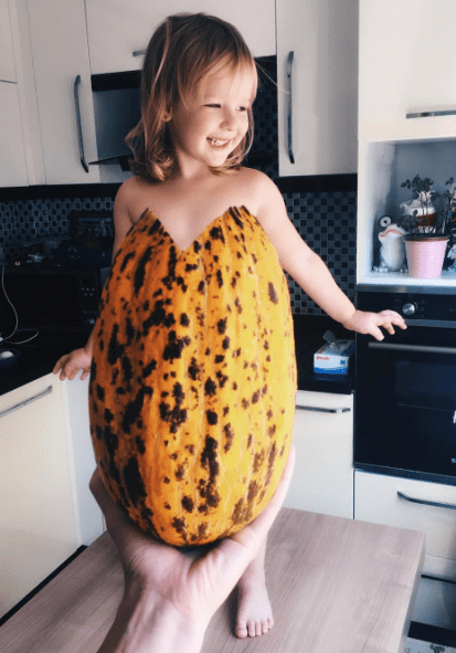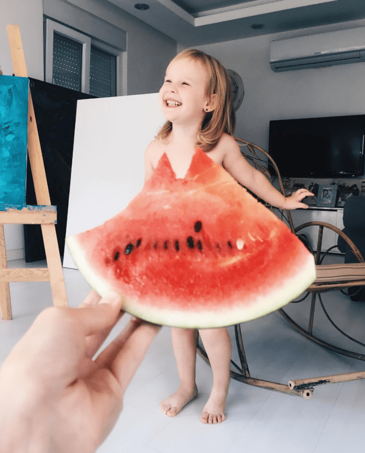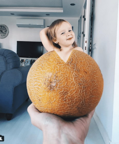 Tutto è iniziato con una semplice fetta di melone che la mamma ha tenuto in mano come se fosse un vestito.