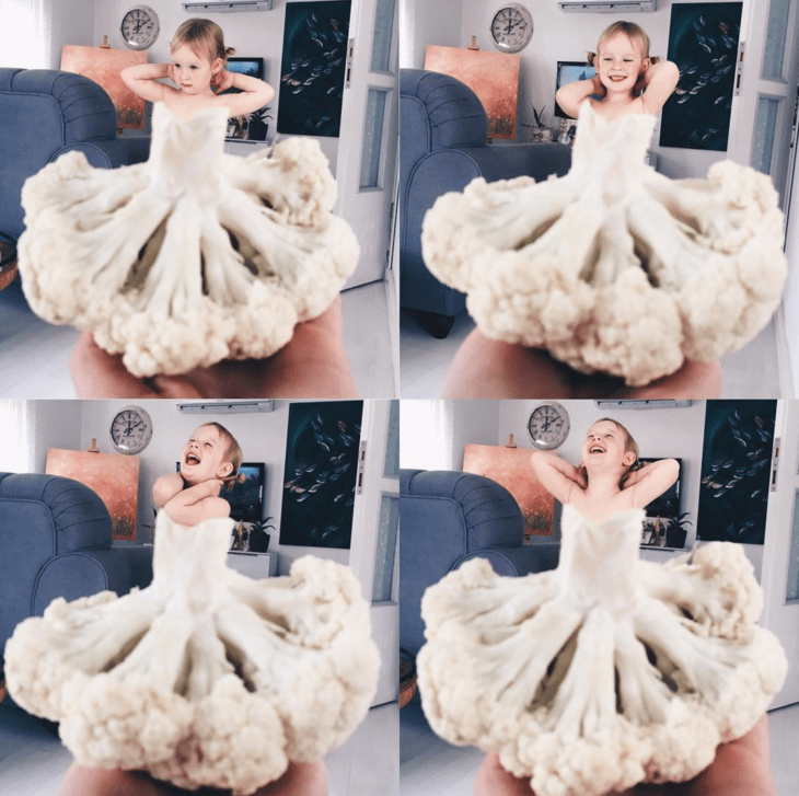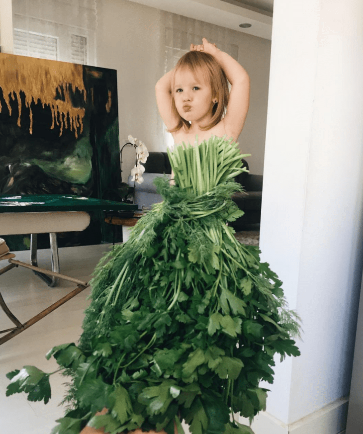La donna ha usato vegetali, frutta e anche splendidi fiori per creare costumi per la sua bimba di 3 anni: Stefani.