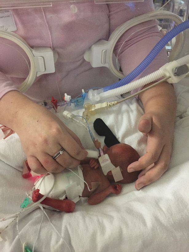 “La mia bambina era lunga 14 cm. quando è nata ma sembrava così piccina nell’incubatrice quando le sue gambe e braccia erano rannicchiate, l’abbiamo paragonata a una pallina da tennis, era così piccola da somigliarle”.