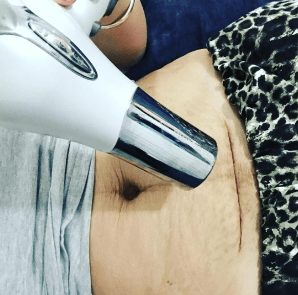 Su Instagram questa mamma ha condiviso le foto della cicatrice mentre ci passa sopra un asciugacapelli (presumibilmente per asciugare un po’ l’infezione).