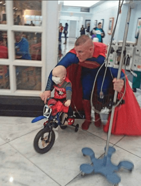 I bambini lo adoravano e quindi gli è venuta l’idea di cominciare a vestirsi come un supereroe per far visita ai bimbi malati.