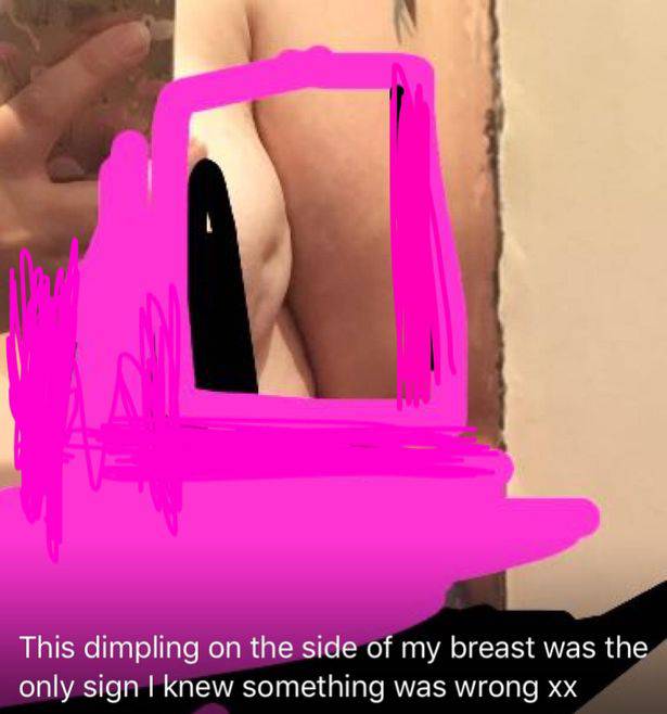 “Ieri mi hanno diagnosticato il cancro al seno, la notizia mi è arrivata in modo sconvolgente mentre le fossette (nell’immagine) sono l’unico segno che ho avuto. Le ho notate alla fine di giugno, due giorni dopo sono andata dal ginecologo che mi ha consigliato una clinica per il seno.
