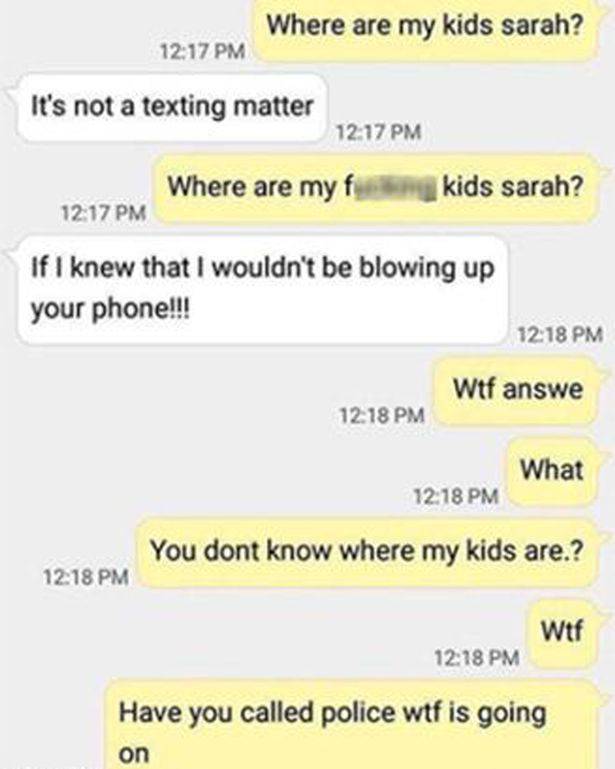 Papà: c***o rispondimi, sai dove sono i miei figli?, C**o, hai chiamato la polizia? Cosa sta succedendo?