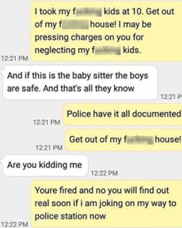 Papà: ho preso io i bambini alle 10. Esci dalla mia c***o di casa. Potrei anche sporgere denuncia per comportamento negligente nei confronti dei bambini.