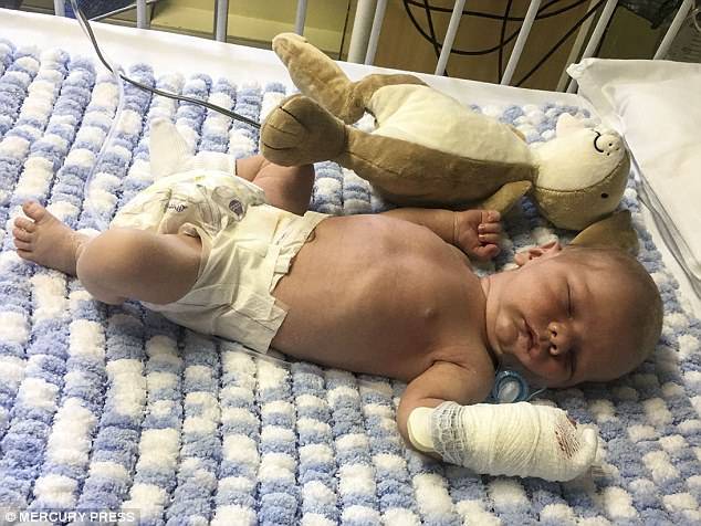 Il papà del piccolo ha notato che c’era qualcosa che non andava quando un mattino, si è svegliato alle 4 per dargli da mangiare e si è accorto che il figlio era molto caldo. Inizialmente ha pensato che fosse dovuto alla stagione calda ma nel corso della mattinata la temperatura di Gunner è arrivata a 38,9°.