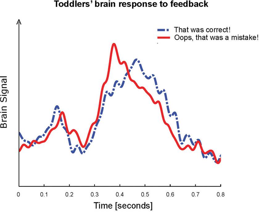 Dagli esperimenti praticati con gli adulti si sa che esistono diversi modi con cui il cervello segnala che è stato compiuto un errore o che abbiamo fatto una cosa bene.