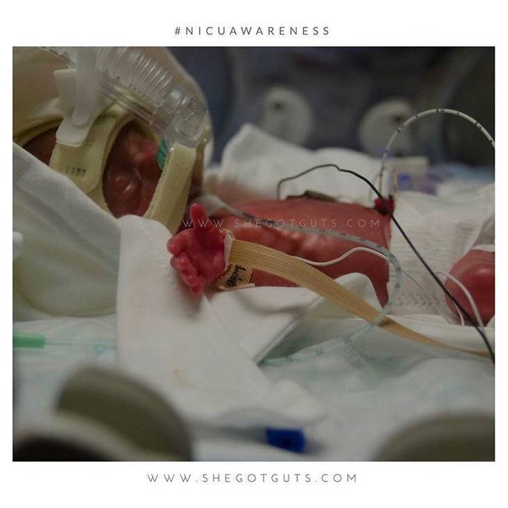 Stephanie ha pubblicato sul suo profilo Instagram questa foto della figlia per mostrare che la Terapia Intensiva Neonatale (TIN) non è solo il luogo dove i genitori leggono o fanno contatto pelle a pelle in attesa che i figli diventino più forti per andare a casa.