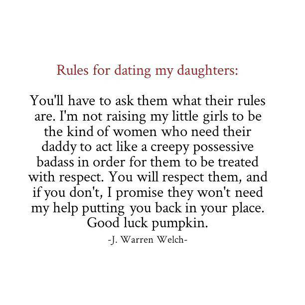 Non dovrete chiedere loro che regole anno. Non sto crescendo le mie figlie per essere quel tipo di donne che hanno bisogno del loro papà che deve agire come un inquietante, possessivo testa di cavolo per far sì che loro vengano trattate con rispetto…