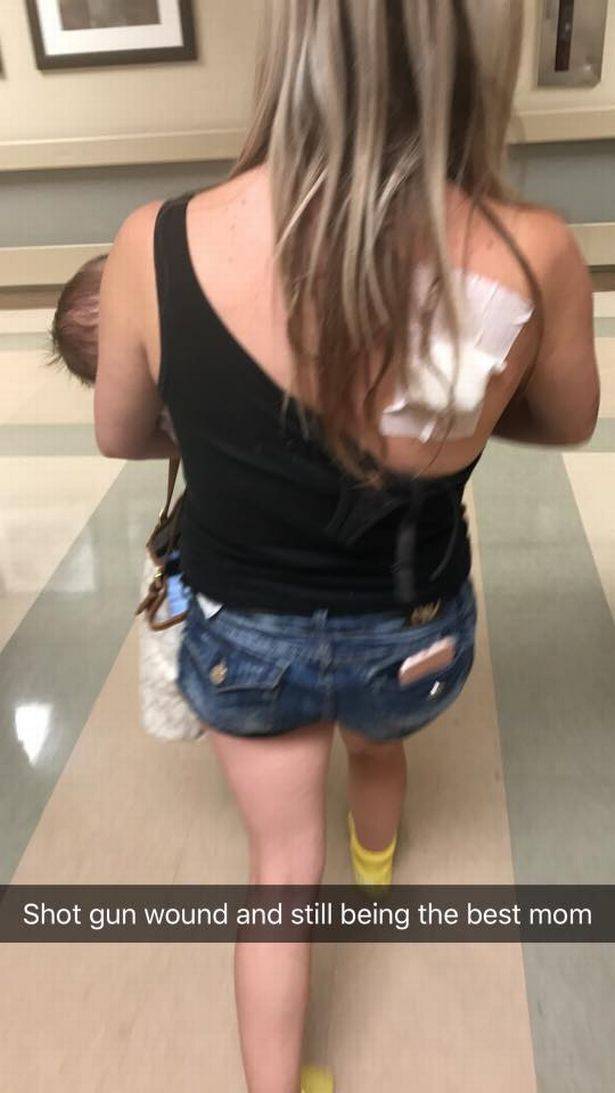 Summer è stata poi fotografata presso il Sunrise Hospital and Medical Center mentre teneva in braccio la sua bambina e camminava nei corridoi, il bendaggio della ferita ben visibile sulla schiena.
