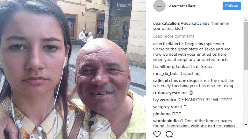 “Cari molestatori” è il titolo della sua pagina Instagram dove ha pubblicato i selfie insieme all’uomo che l’ha molestata riportando la frase che le è stata rivolta.