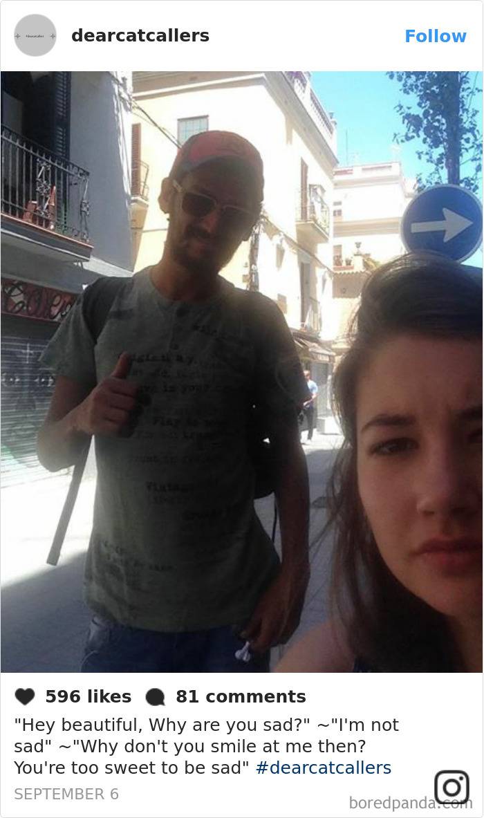Alcuni utenti di dearcatcallers si sono lamentati per il fatto che alcuni commenti non sembrano così offensivi, ma se vi soffermate a rifletterci si tratta pur sempre di approcci inopportuni, talora inquietanti, commessi da giovani, adulti, uomini di ogni età ed etnia che non si rendono minimamente conto che quello che fanno è sbagliato o, se ne sono vagamente consapevoli continuano comunque a perpetrarlo.