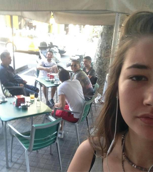 Non si tratta di scatti rubati, ma di veri selfie con individui che, ancora più gravemente, se mai è possibile, non si rendono nemmeno conto di averle rivolto un commento che certamente né lei né nessuna altra donna avrebbe apprezzato.