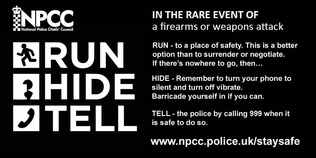 La polizia invita i ragazzi a fuggire, oppure trovare un posto in cui nascondersi e poi avvertire le autorità.