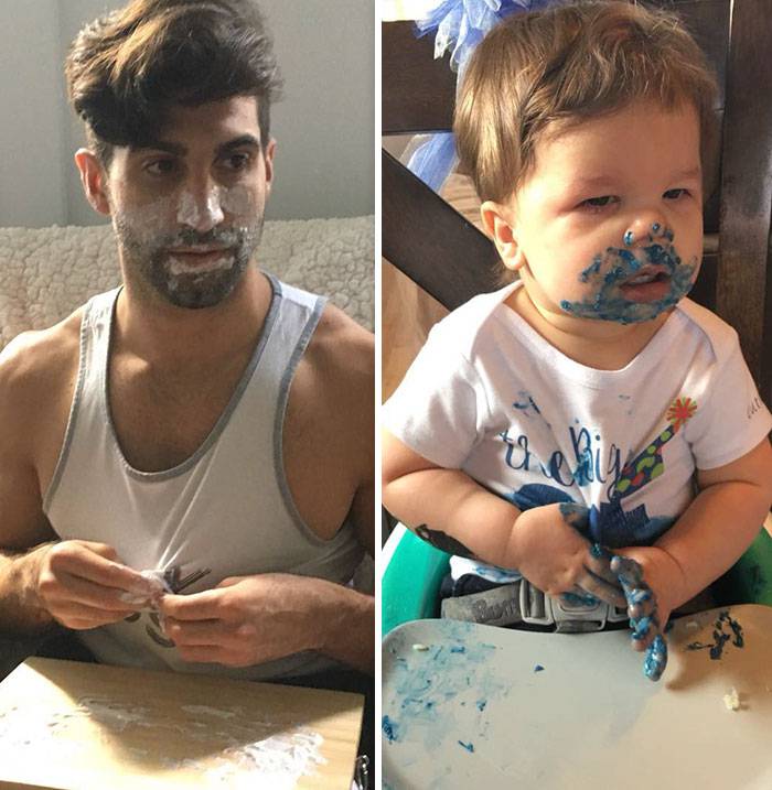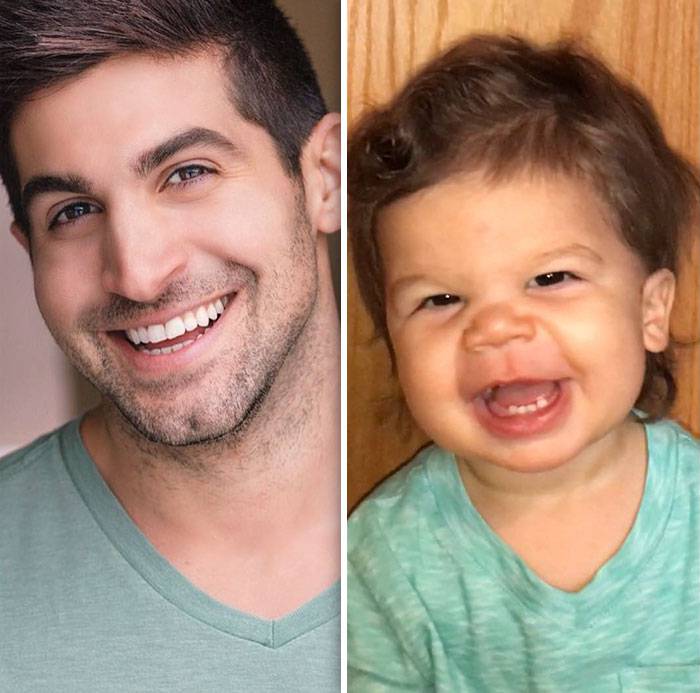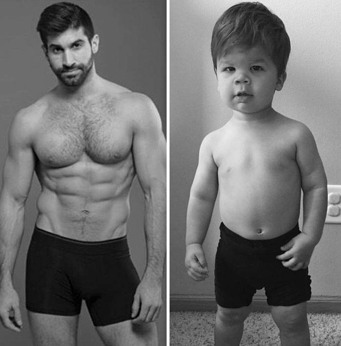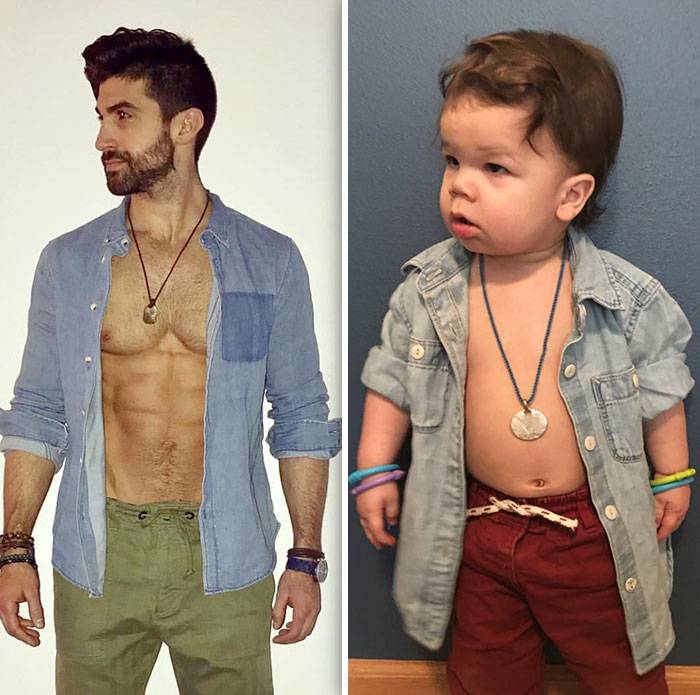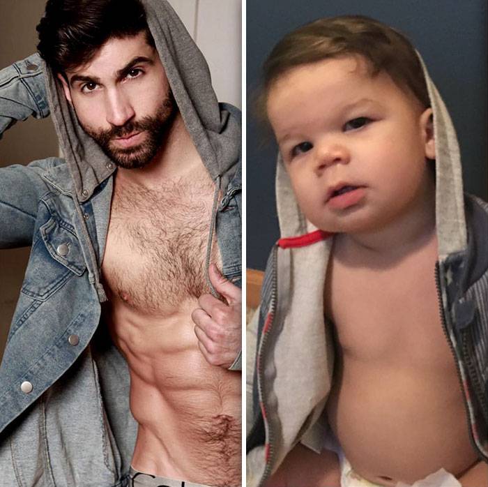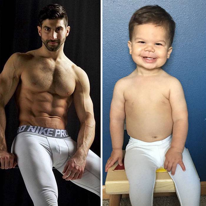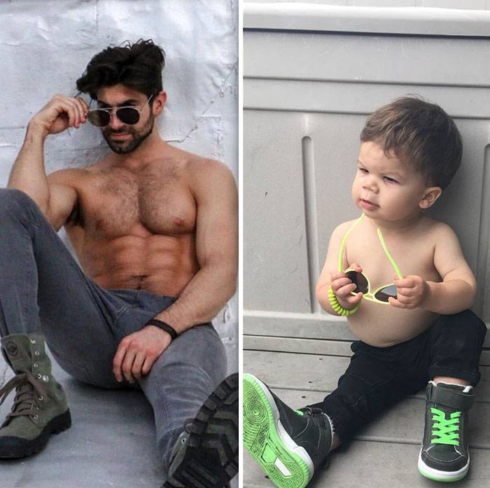 Zio modello e nipote di 18 mesi a confronto: lo scherzo di una mamma al fratello