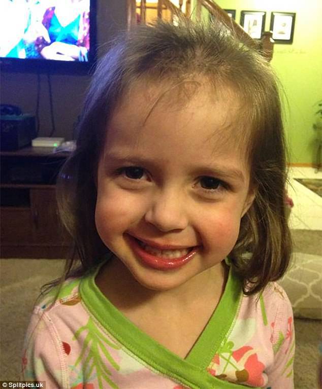 Nuovo look. Questa bimba ha tagliato un pezzo centrale dei capelli dove c’è la riga mentre i genitori non stavano guardando.