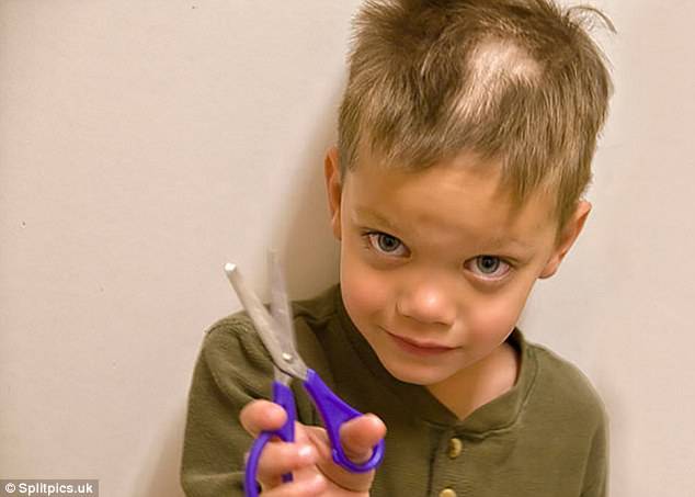 La galleria che vi presentiamo qui sotto mostra perfettamente cosa accade quando un bimbo si impadronisce di un paio di forbici tagliandosi i capelli.