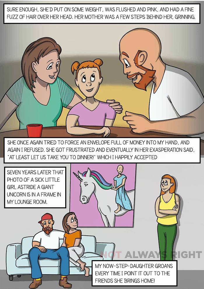 I fumetti vengono dal sito web di Bored Panda, mentre la storia è stata raccontata sul sito Not Always Right.