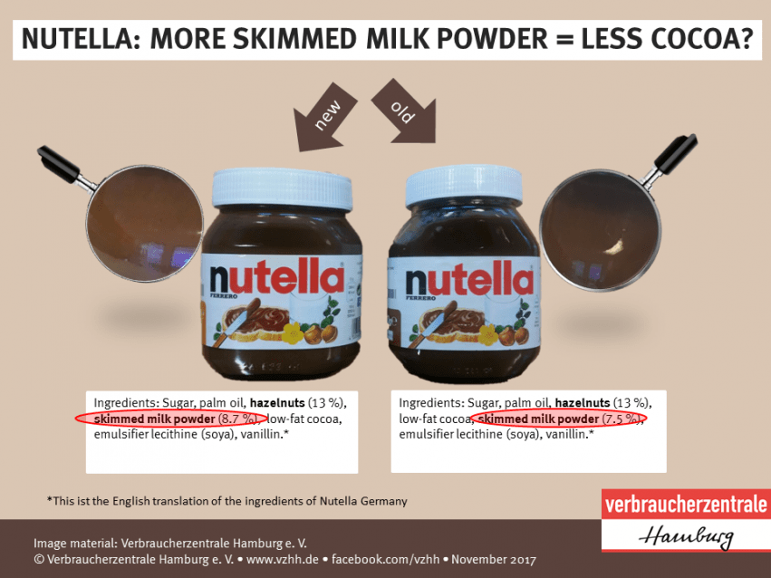 Se la si legge, infatti, si noterà che il primo ingrediente è lo zucchero, cosa che che i nutrizionisti sconsigliano per le merende dei bambini e non solo. Ad ogni modo, in modica quantità non fa male, come tutte le cose: peccato che un’associazione dei consumatori tedesca abbia scoperto che Ferrero, la casa produttrice, abbia cambiato ricetta mettendo più zucchero – che da una percentuale del 55,9% passa al 56,3% -e aggiungendo il latte scremato in polvere che dal 7,5% arriva all’8,7%.