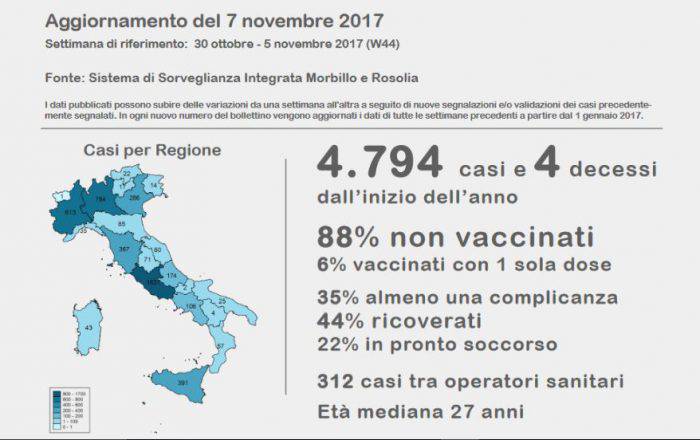 Ecco i dati sul morbillo aggiornati al 10 novembre: