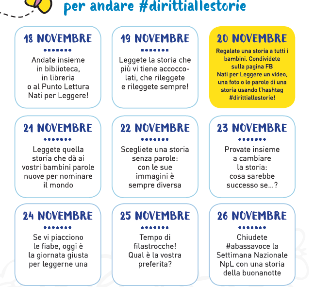 Per questo motivo quest’anno la settimana dedicata alla lettura coinvolge anche il 20 novembre, la Giornata dei diritti dell’infanzia e dell’adolescenza.