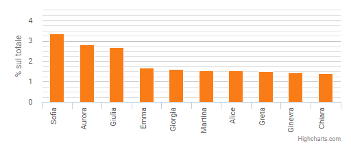 • Giulia, valore assoluto 6.093, percentuale sul totale maschi 2,67