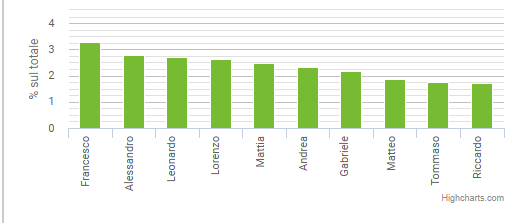 • Leonardo, valore assoluto 6.505, percentuale sul totale maschi 2,71